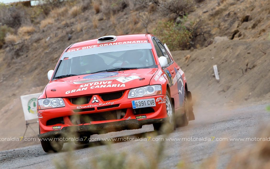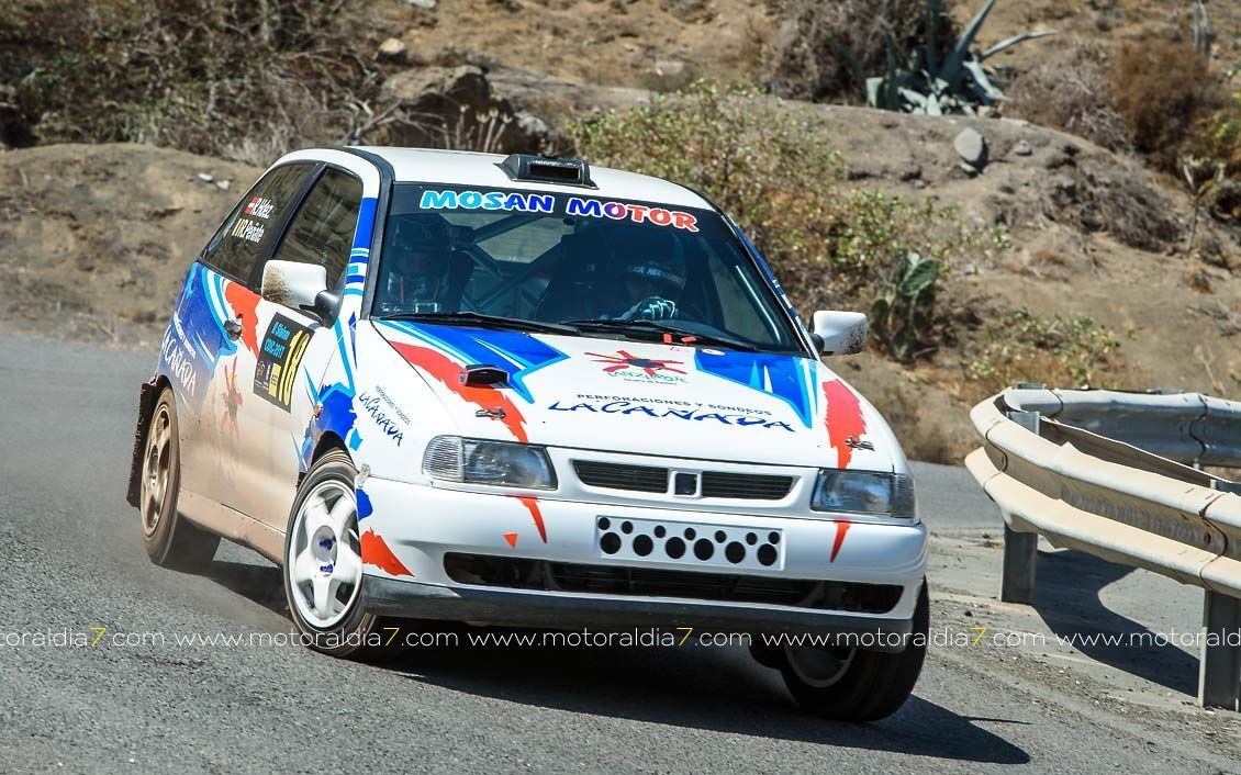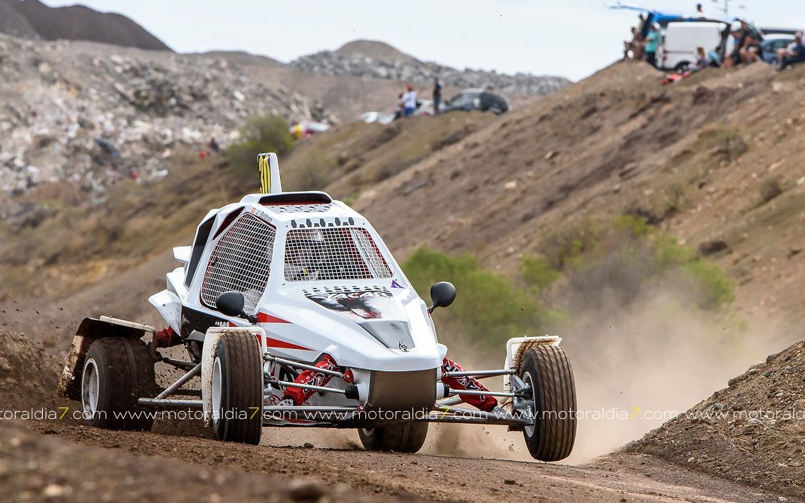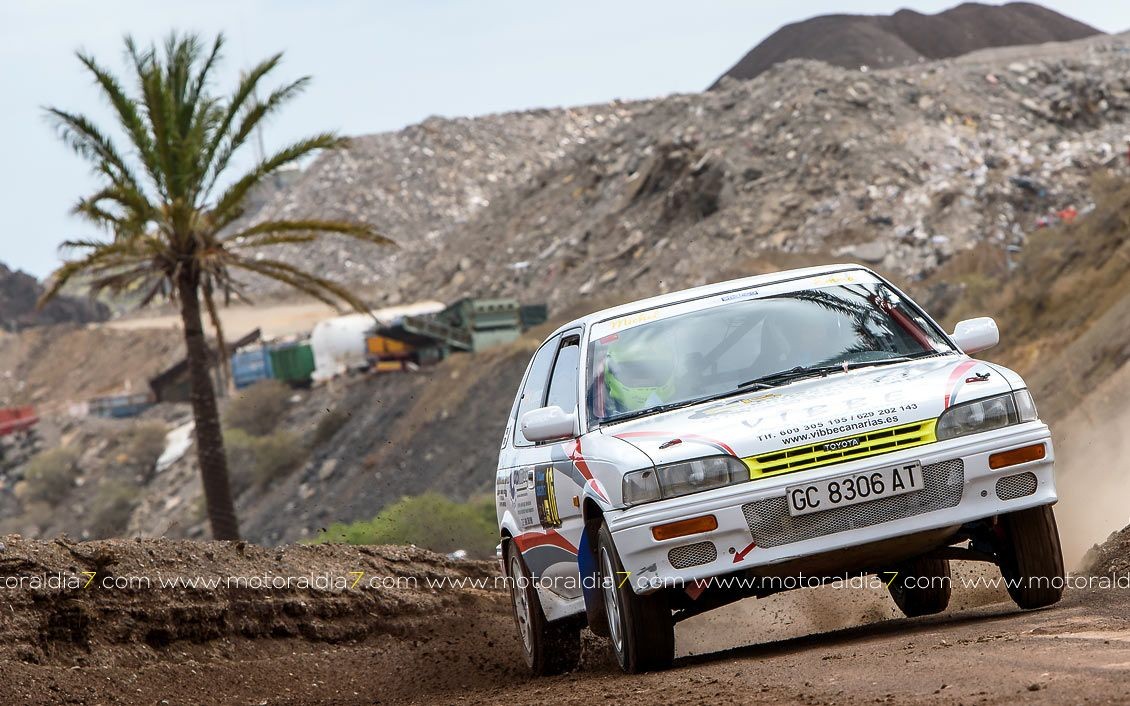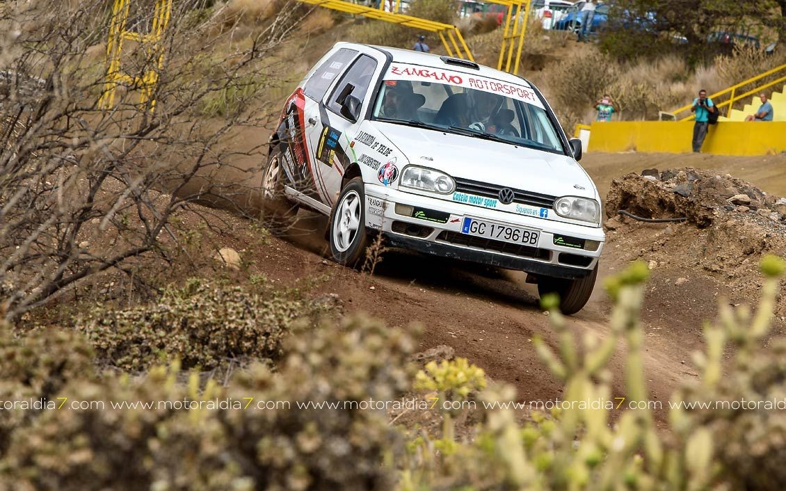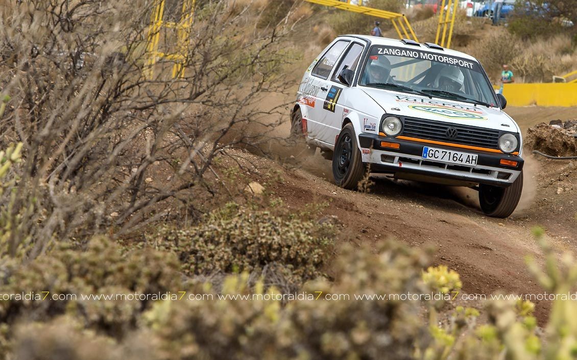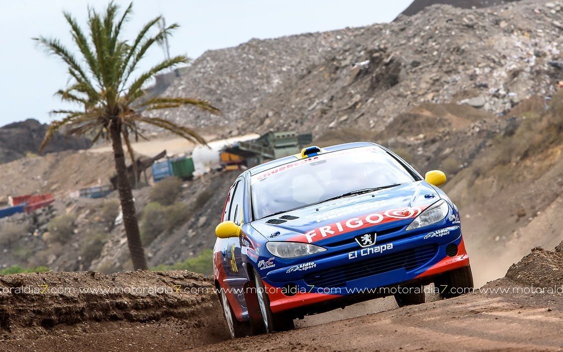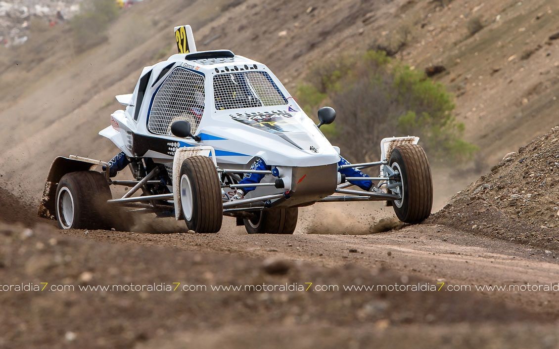 Estrenando el trazado de la CDIC, el joven lanzaroteño Raúl Hernández, con Rogelio Peñate a la derecha, realizaba una prueba de menos a más, mejorando sus tiempos en cada pasada, lo que les valía ser los quintos de la general en el que era su primera competición en tierra en Canarias.