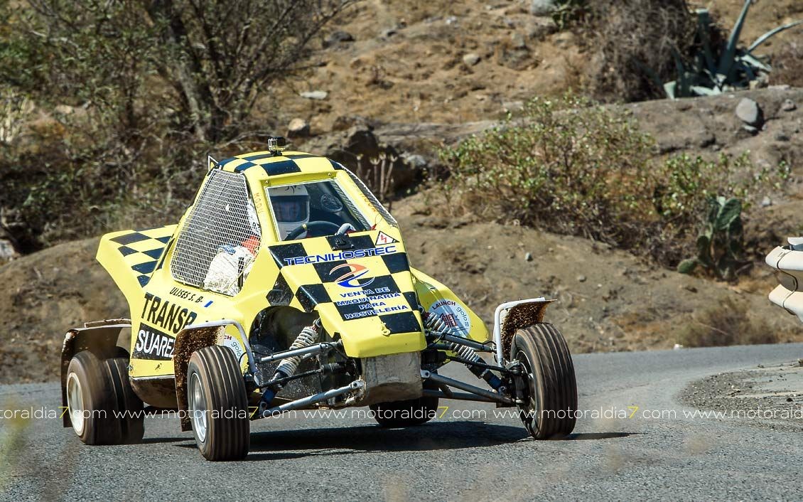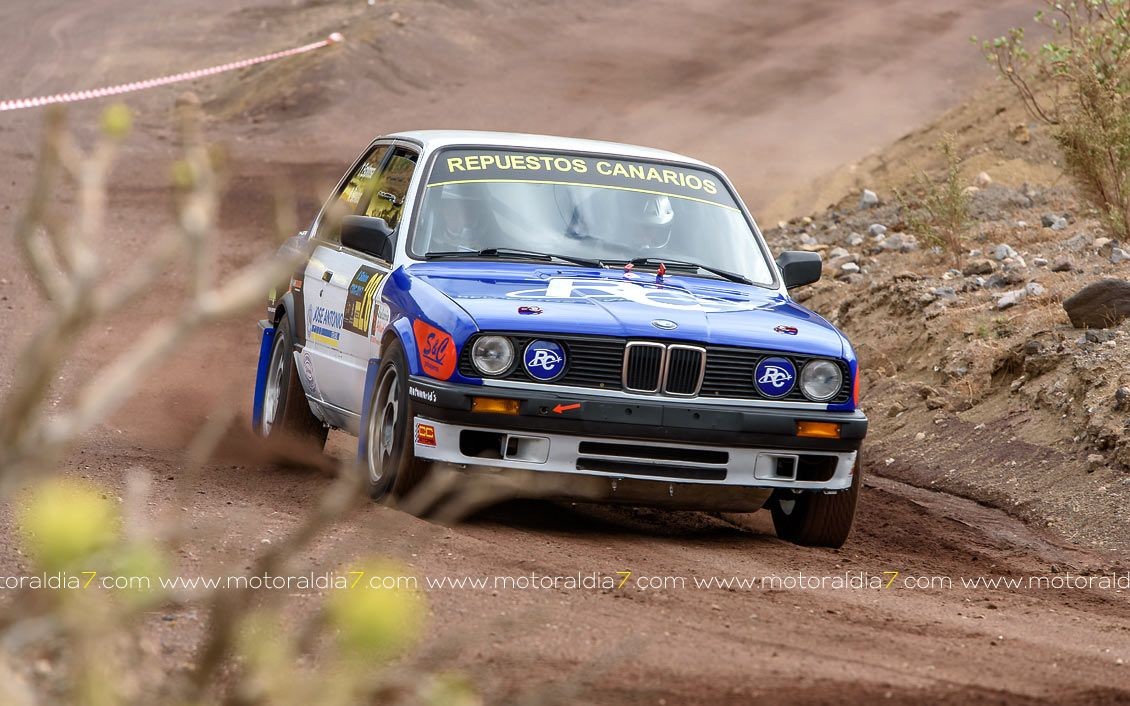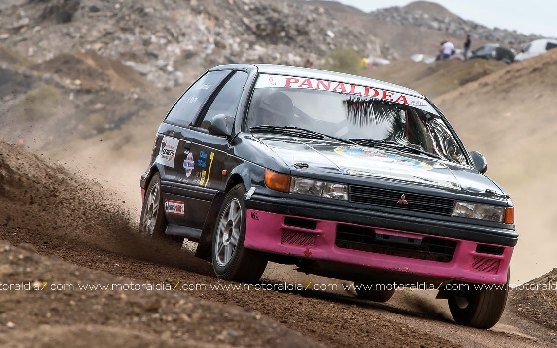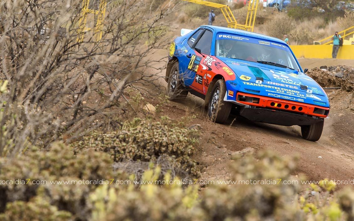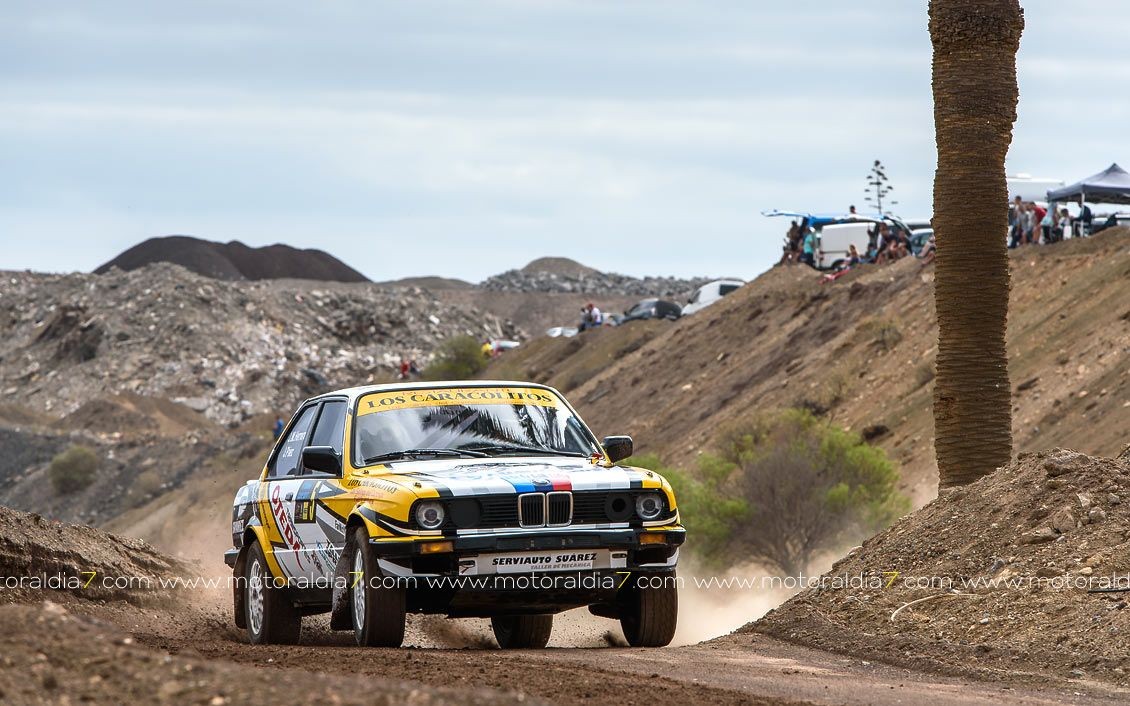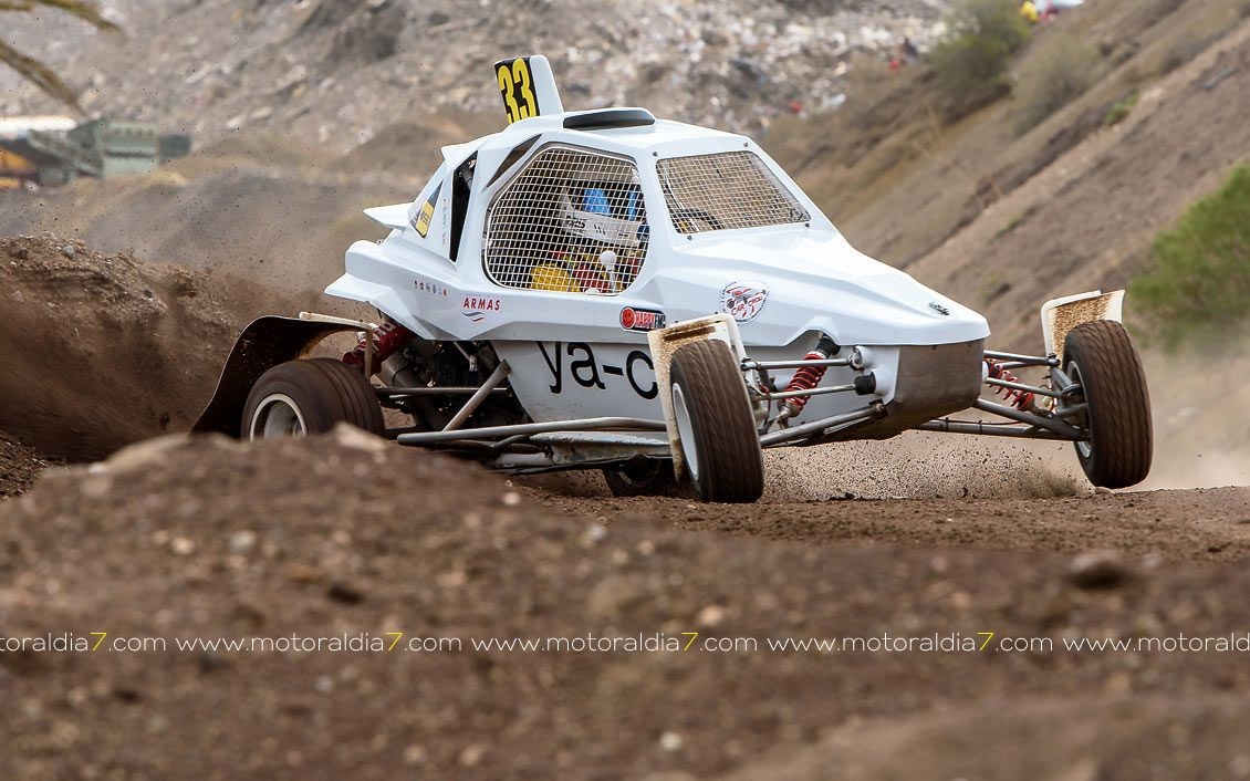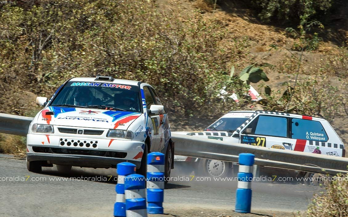 Estrenando el trazado de la CDIC, el joven lanzaroteño Raúl Hernández, con Rogelio Peñate a la derecha, realizaba una prueba de menos a más, mejorando sus tiempos en cada pasada, lo que les valía ser los quintos de la general en el que era su primera competición en tierra en Canarias.