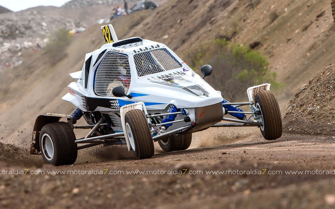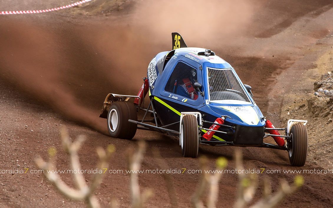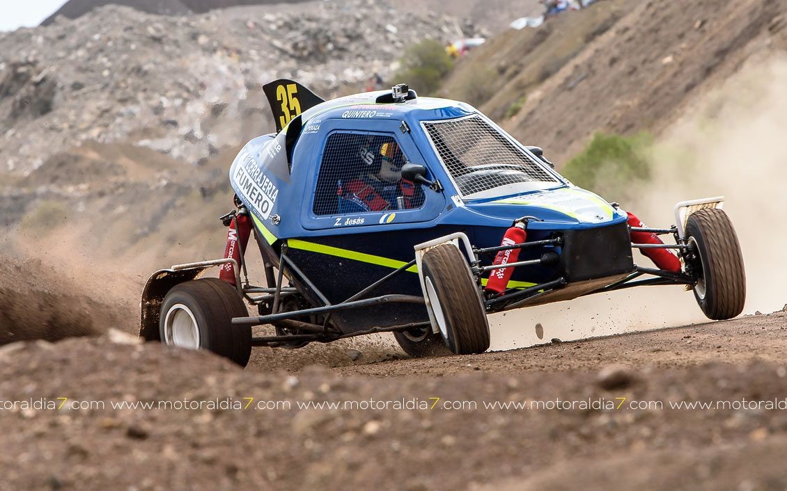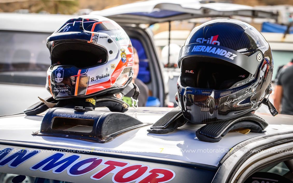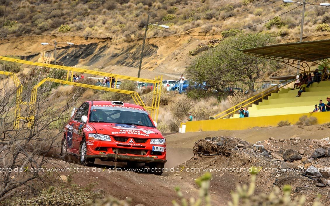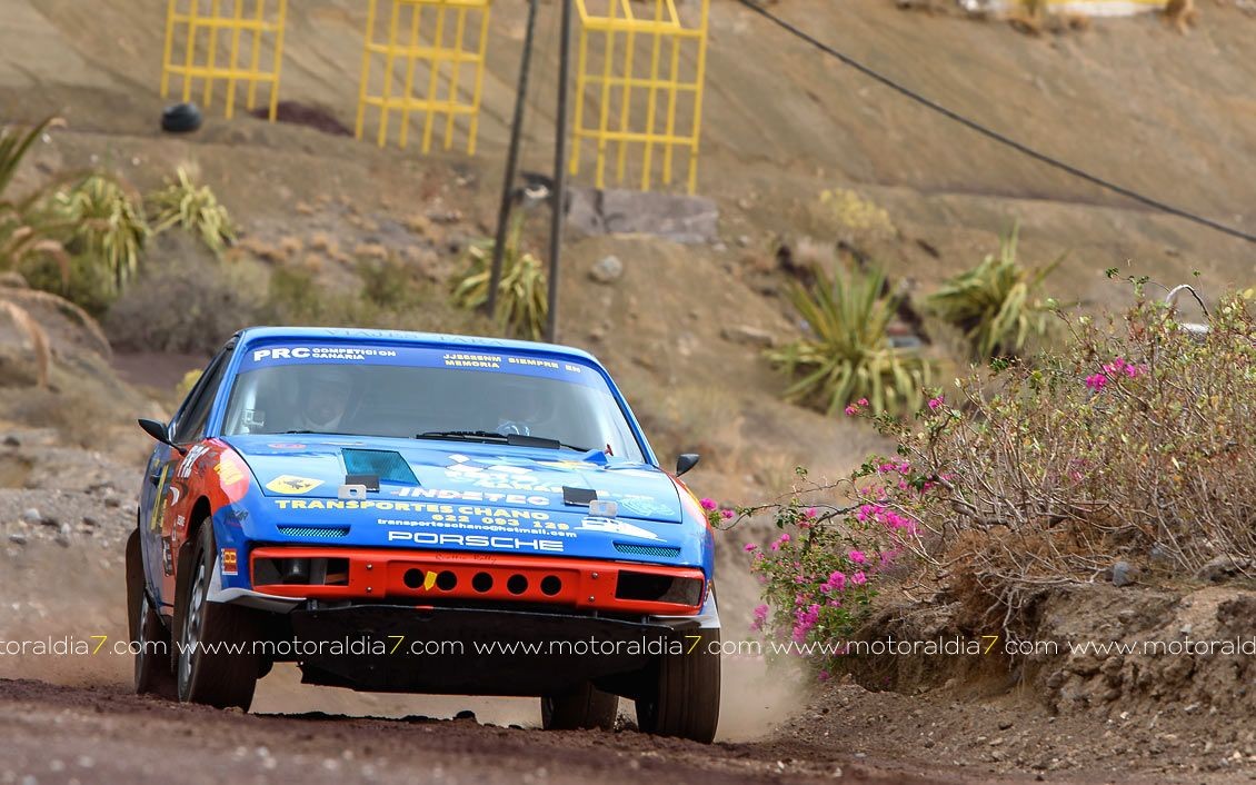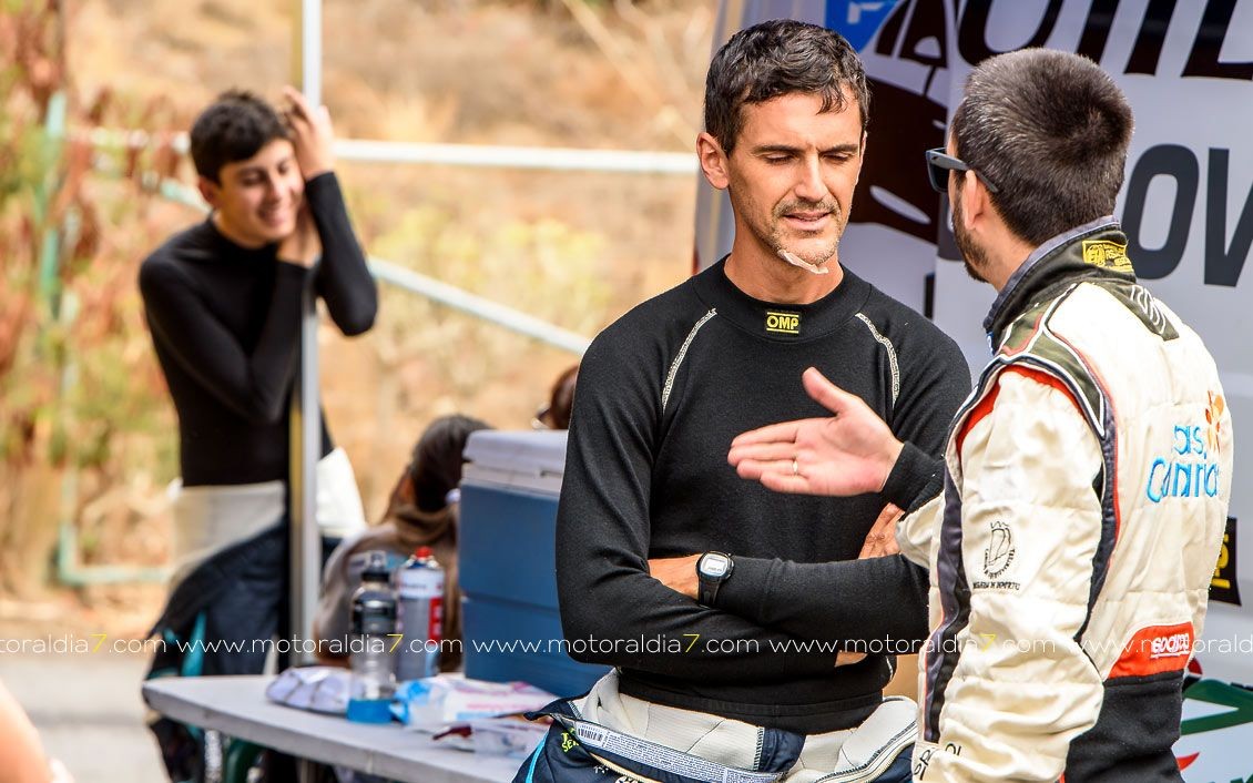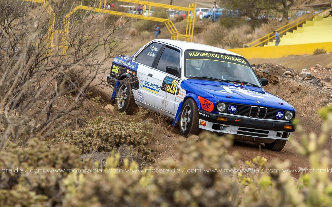 Estrenando el trazado de la CDIC, el joven lanzaroteño Raúl Hernández, con Rogelio Peñate a la derecha, realizaba una prueba de menos a más, mejorando sus tiempos en cada pasada, lo que les valía ser los quintos de la general en el que era su primera competición en tierra en Canarias.